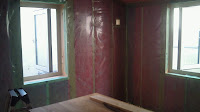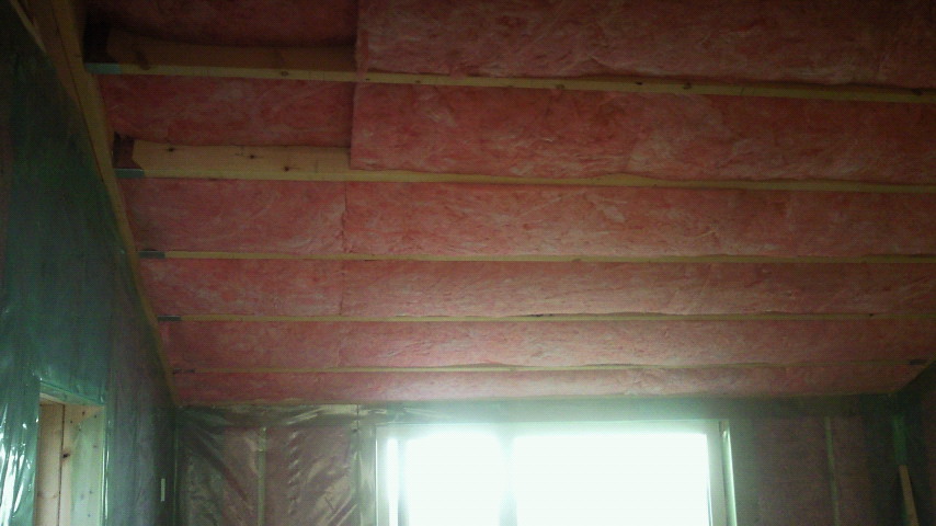 付加断熱が進んでいます。その上に、木の香の家の名前入り透湿防水(防風)シートを下から張り上げていきます。